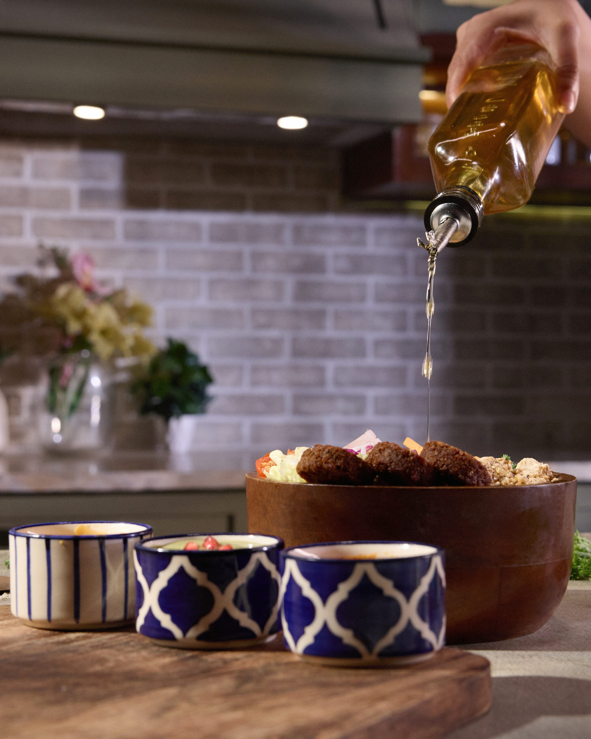 Base: Turmeric Rice | Protein: Tofu Shawarma + Falafel | Spread: Babaganoush, Hummus | Toppings: Garbanzo Beans, Cucumber-Tomato Mix, Olives,…